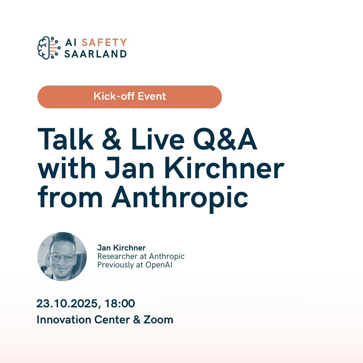 Upcoming events. Oct 23 Kick-Off Event: Live Q&A with Jan Kirchner from Anthropic Thursday, October 23, 2025 6:00 PM 8:00 PM Google Calendar ICS View Event →